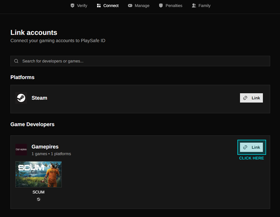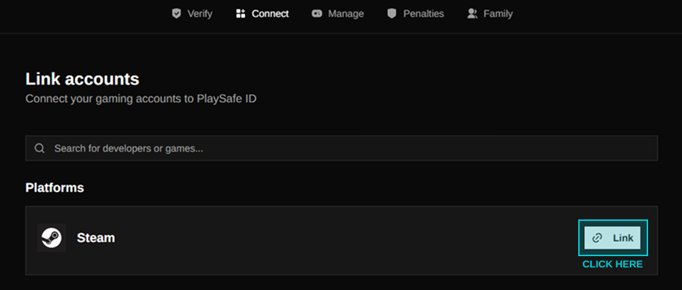 Once your account has been verified, you'll gain access to link game accounts to your PlaySafe ID and start playing integrated titles. Head over to the connect page to get started.